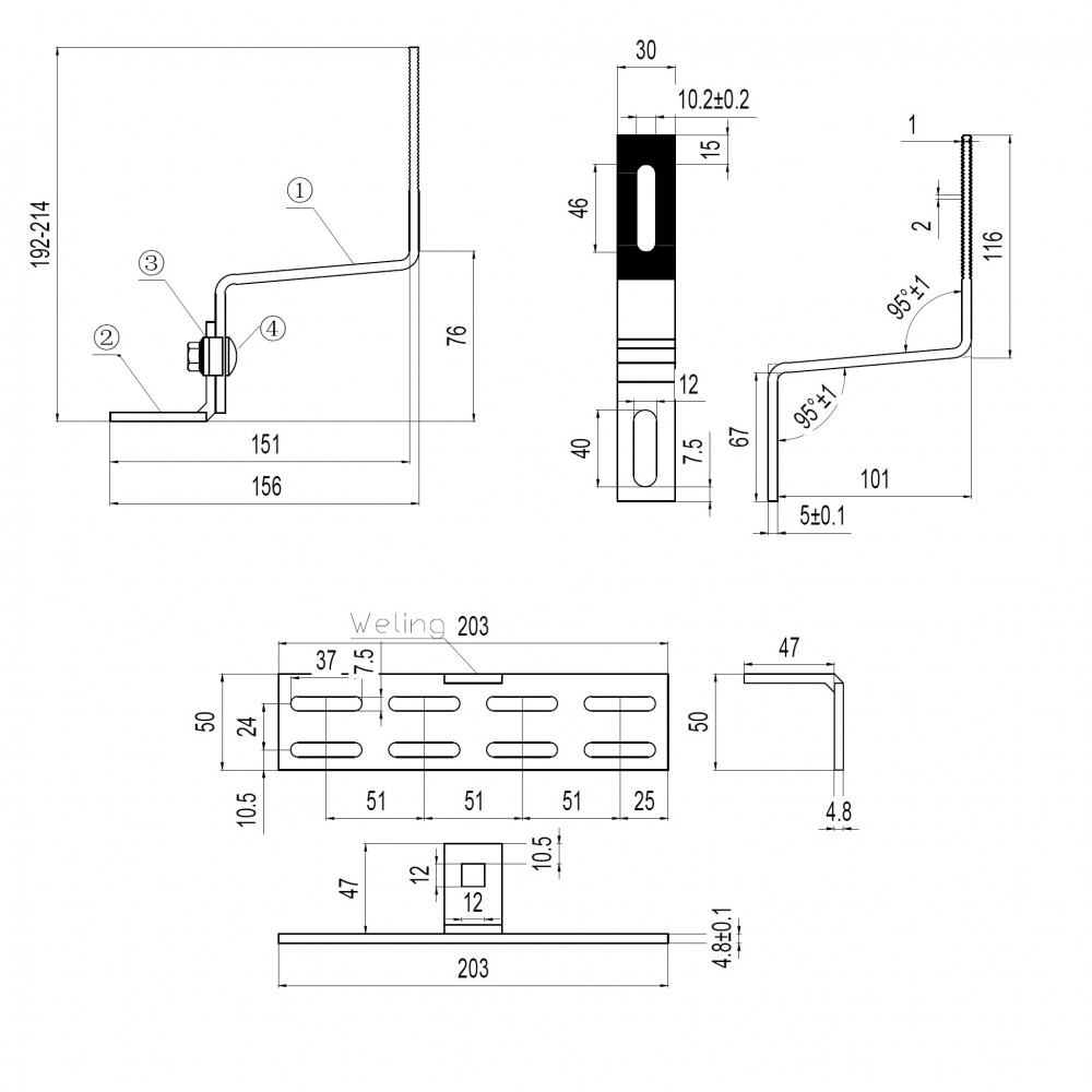 Suport reglabil pentru montaj panou fotovoltaic pe acoperis cu tigla (in Z)
